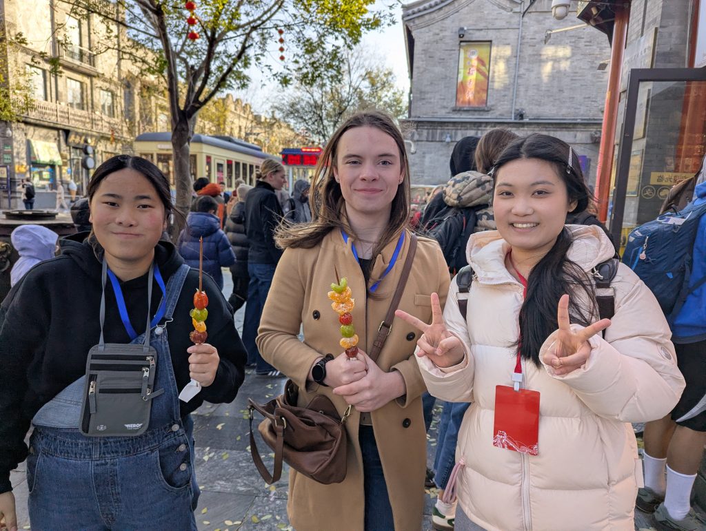 The first day of activities began in the Forbidden City, the ancient palace complex that was home to several Chinese emperors. Students then visited the Qianmen and Dazhalan traditional arts shopping street, then enjoyed a Chinese acrobatics performance at the Hongqiao Theater.