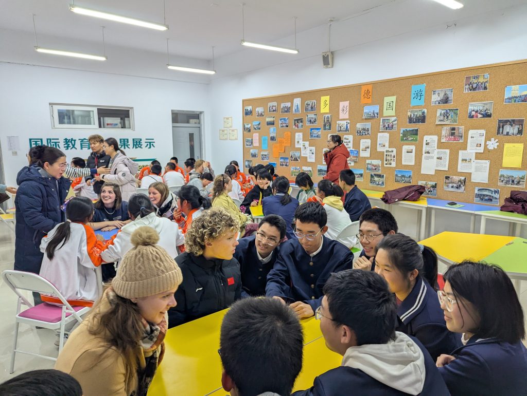 The next day, students began the service learning portion of the trip. They first visited the Zhangjiakou Huilai Senior Center. They interacted with the local residents and learned about the daily lives of Chinese seniors. Students also learned about how Chinese medicine is a part of their lives. In the evening, the students visited a younger crowd in the Number 1 Secondary School in Zhangjiakou city. The American students engaged and had enlightening conversations with the Chinese students. This activity was the highest rated on the trip, full of unforgettable moments and new friendships.